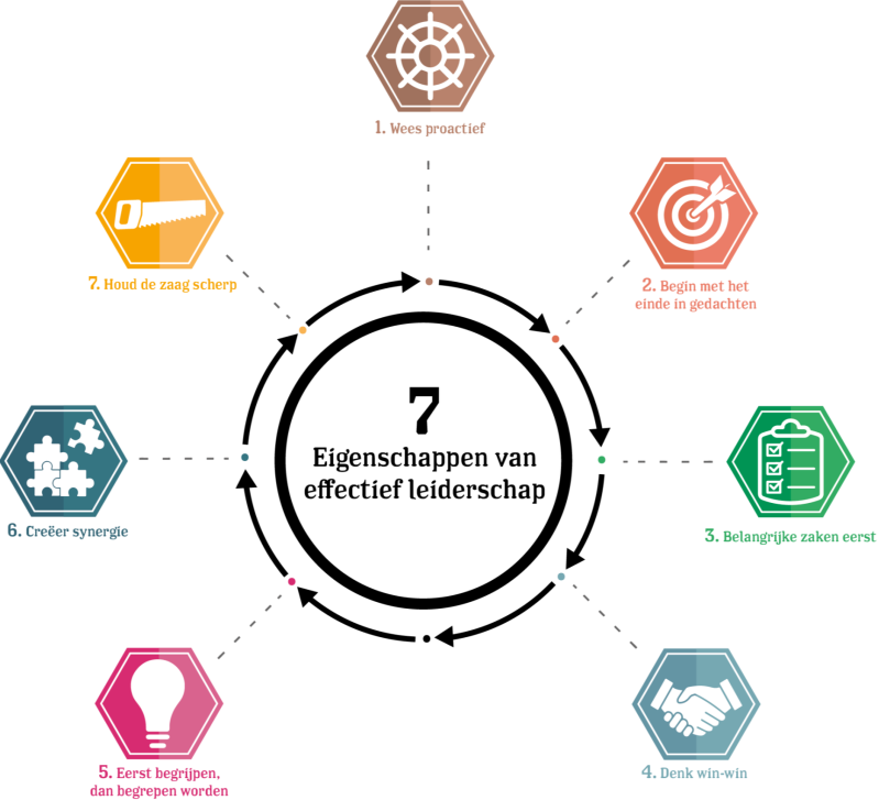 Hieronder worden de 7 eigenschappen van Covey beschreven
